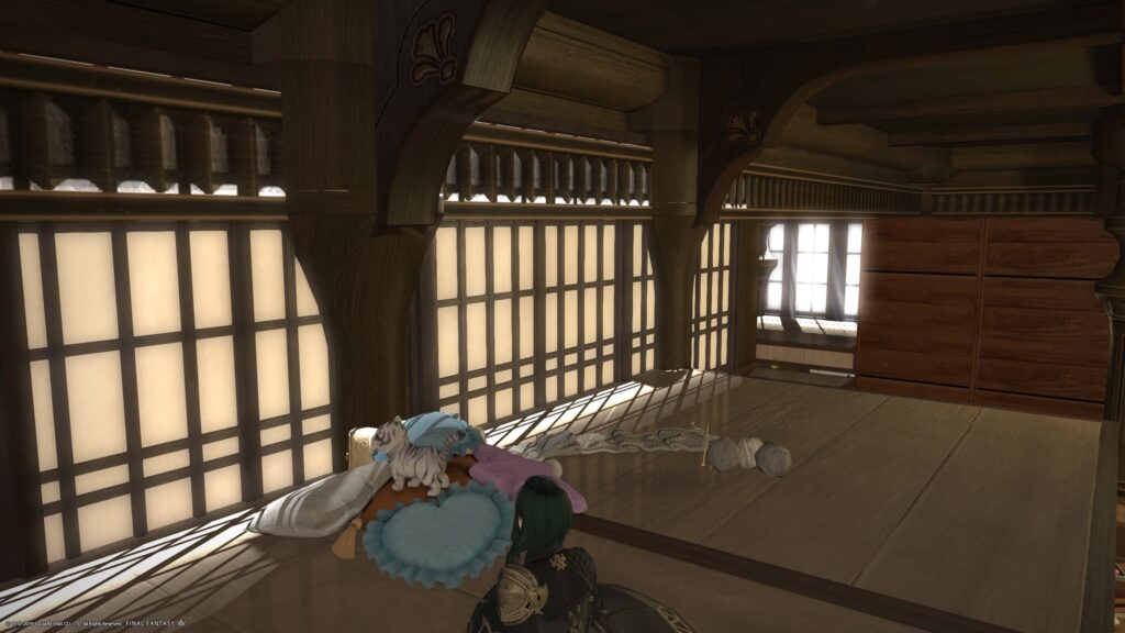 そんなこんなで、今日もエオインが遅れてしまいました。だからね、今日はエキルレを回しただけなの。明日、いつも通りに起きたら、もう、午前中から遊んでやるんだから〜と思いつつ、昨日弄ったハウジングを眺め直すと、「あら、わりといいんじゃない?」という気持ちになりましました。わたしなりに頑張ったよ……!