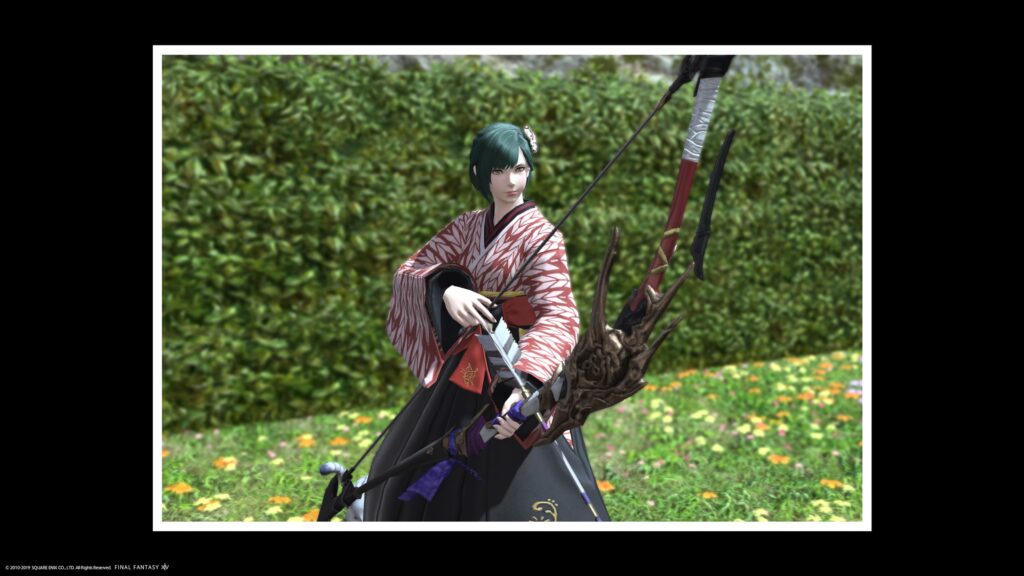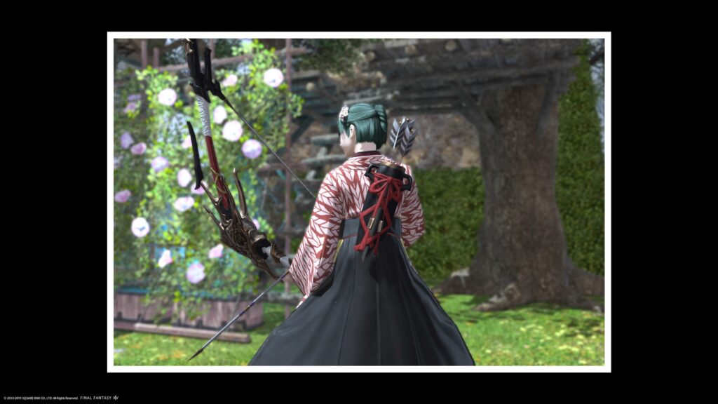 なんだかなあ。エオルゼアに来てから、コスプレに関する夢がどんどこ叶っていく気がする。や、真面目にね、弓道してみたかったなあと思った時代もあったのですけれど、機会がなくてね。代わりに太極拳など教わる機会があったから、それは良しとして整理整頓済みの夢だったのですけれど。