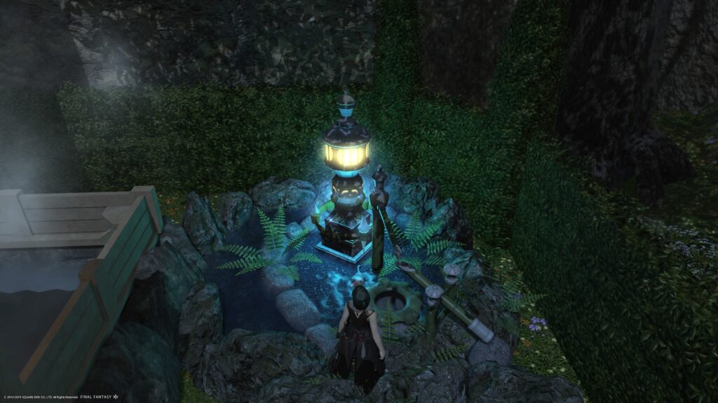 ラストに、鹿威しにはプライベートエーテライトを重ねておきました。鹿威しはそのままで充分素敵なデザインですよね。だからそのままで設置したかったのですけれど、プライベートエーテライトは、どうしても外せないアイテム。デザインが少々、洋風だから置く場所に悩んだのですけれど、思い切って重ねたらこんな感じになってくれました。