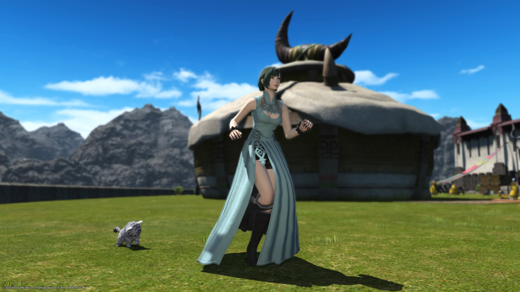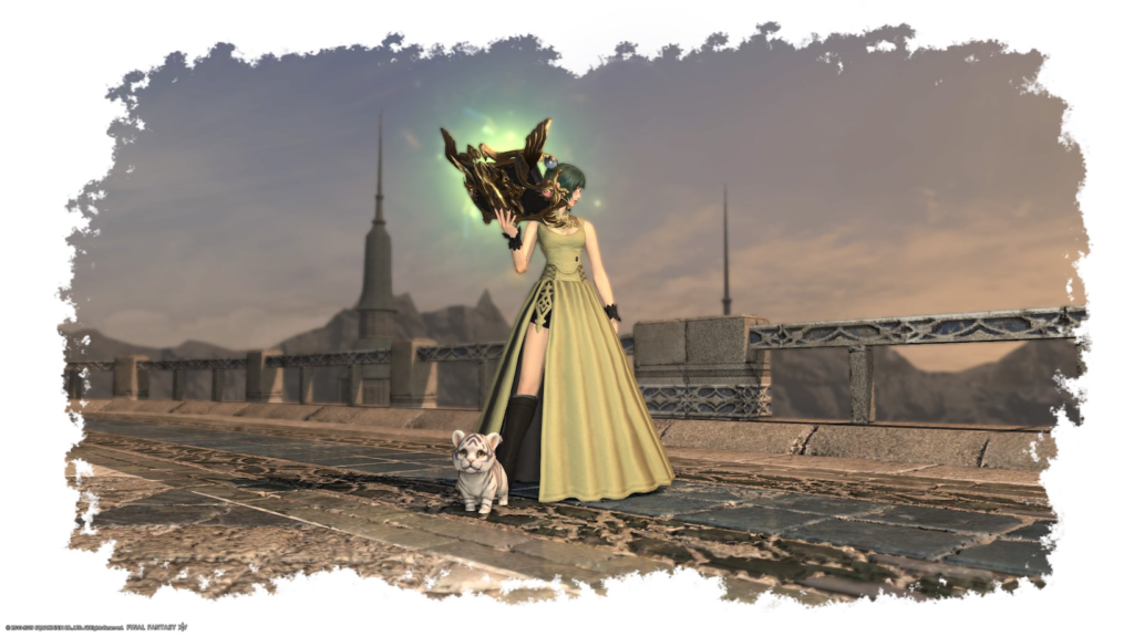 嬉しくて嬉しくて、さっそく装備です。染色しようかどうか、迷ったのですけれど、これまでヨルハ胴装備は染色してなかったから、してみたのです。元のままの色合いが素敵だからこそ、そのままを活かしてミラプリをされている方が多いように感じられたから、わたしは逆を進んでみることにしたのでした。