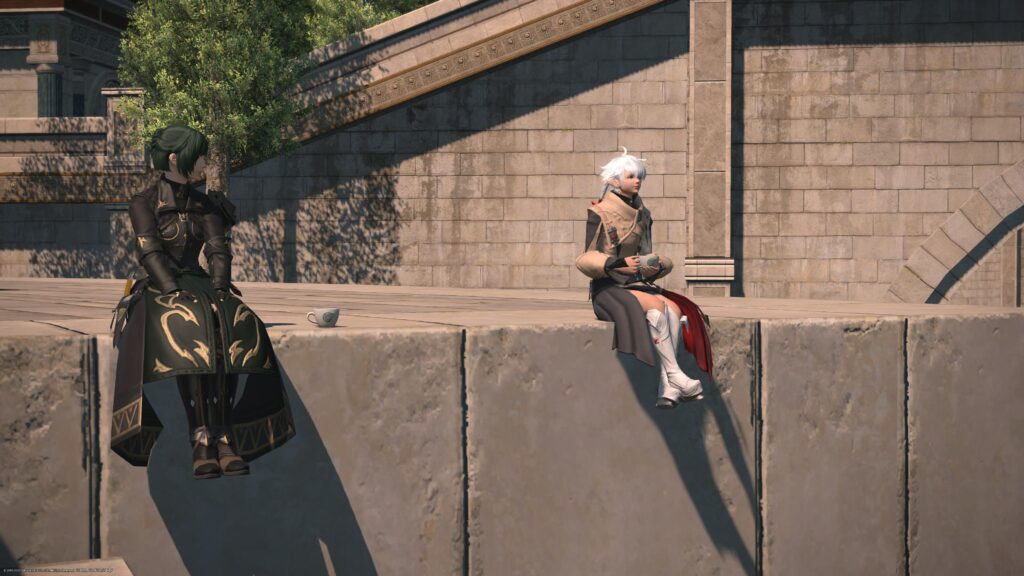 さて、この「ひと息ついたら」ではアリゼーの繊細な内心が語られます。冒険者は、こうしてアリゼーの内心を聞く機会に恵まれてるなあと捉えながら、そうしてアリゼーが話してくれることを嬉しく感じていました。仲良し、って感じがするもの。アリゼーは基本的に真っ直ぐなんだなあ、と感じる時間は微笑ましくて大好きです。