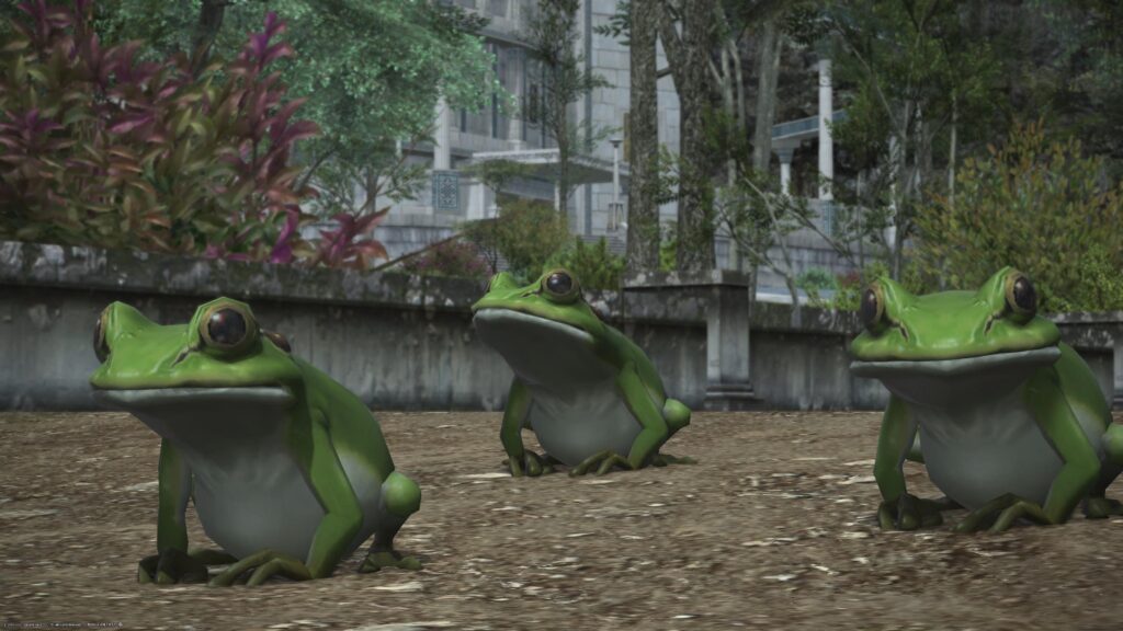 このとき、他の場所に行きそうになったのだけど、アルフィノ蛙とアリゼー蛙に方向修正してもらいました。なんとか正しい場所に辿り着いたところで、エレンヴィルたちの会話を聞いたのですよ。グリーナー達は予想以上にブラックな扱いを受けているんですねえ。事情を決めた者と事情を知らない者との乖離が始まってる、という印象です。