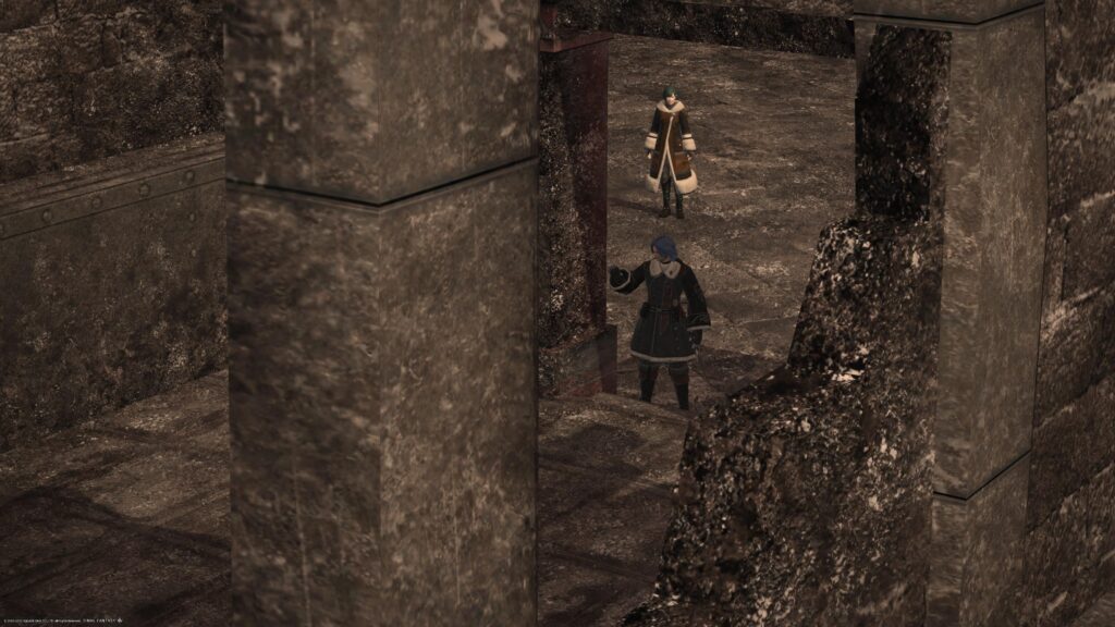 おまけに、アルフィノとアリゼーに行動を制限する首輪をつけられてしまいました。冒険者はエオルゼアの英雄だから、その力量を恐れられ、首輪をつけられることはなかったのですけれど、双子たちが捕まえられている以上、暴れることなんてできやしない。もー、この人以外に話できる責任者はいないのか、と思ってしまいながら、とりあえずその場にいた人々と会話することを許されたから、いろいろ聞いて回ったのだけど。