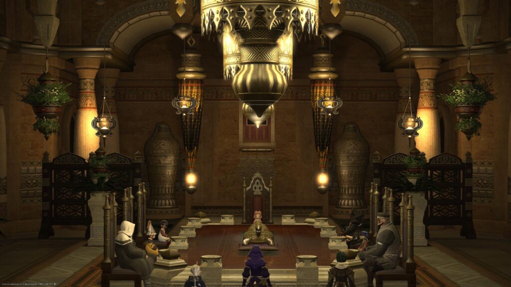 ウルダハ王宮を訪れたユウギリさんたちの受け入れをどうするか、砂蠍衆の皆さんが話し合いをするところですね。
